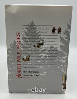 For sale is a Dept. 56 North Pole Series Star Brite Glass Ornament Shop In Box # 4030712. See all photos for details of any imperfections. Item you will be receiving.